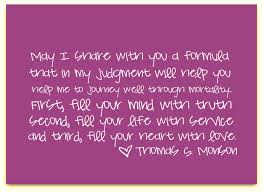 May I share with you a formula that in my judgement will help you help me to journey well through mortality. First, fill your mind with truth. Second, fill your life with service. And third, fill your heart with love.